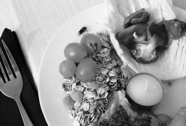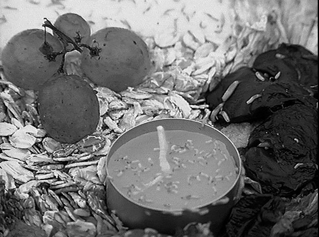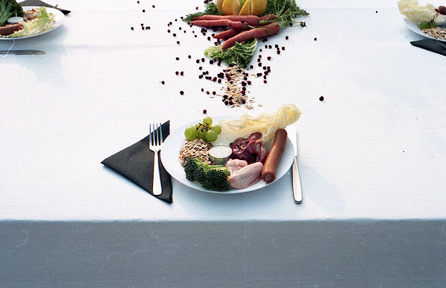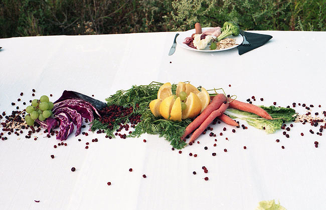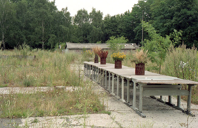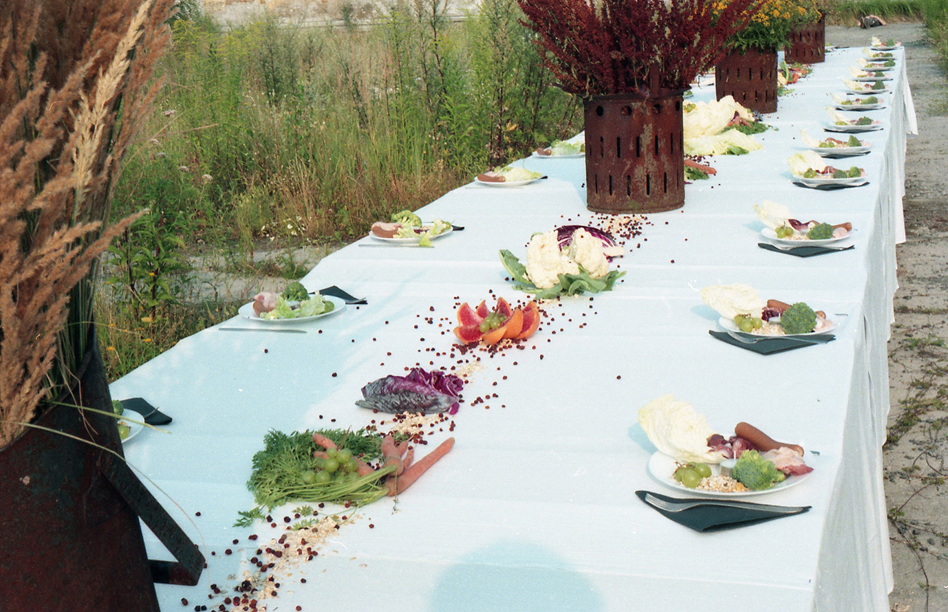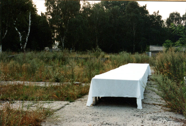 "In the summer of 1994, Ro.Ka.Wi. used a former Russian barracks complex as the setting for an artistic field trip for which she staged her piece ‚'The last time' on a 12-metre-long banquet table... Here, on the contrary, we find ourselves confronted with the movements of destruction and overgrowing, disappearance and decay: video documentation shows how over the course of a week nature reconquered the space. After the withdrawal of the troops, it was not only the decay of the henceforth unused surrounding area that could be observed, but also the ever-greater presence of insectile life on the banquet table."