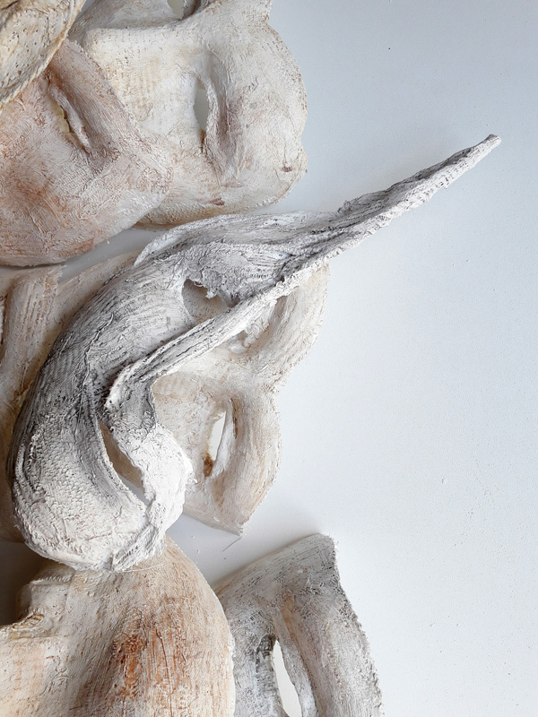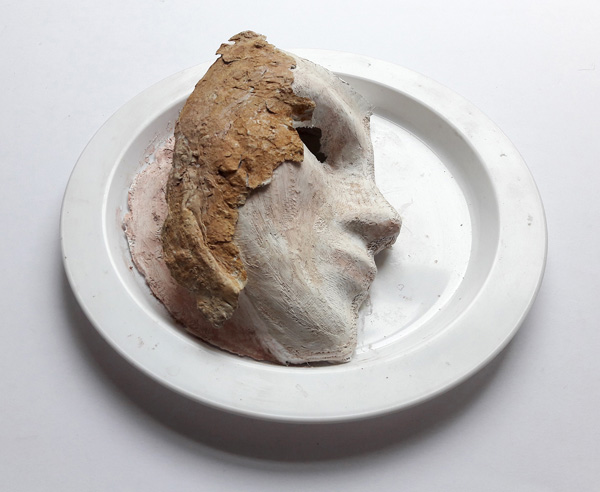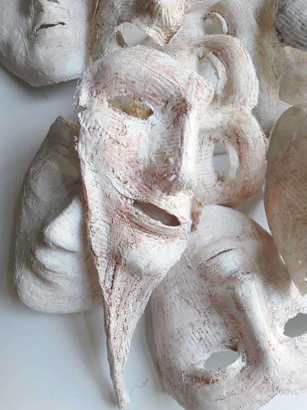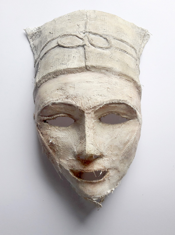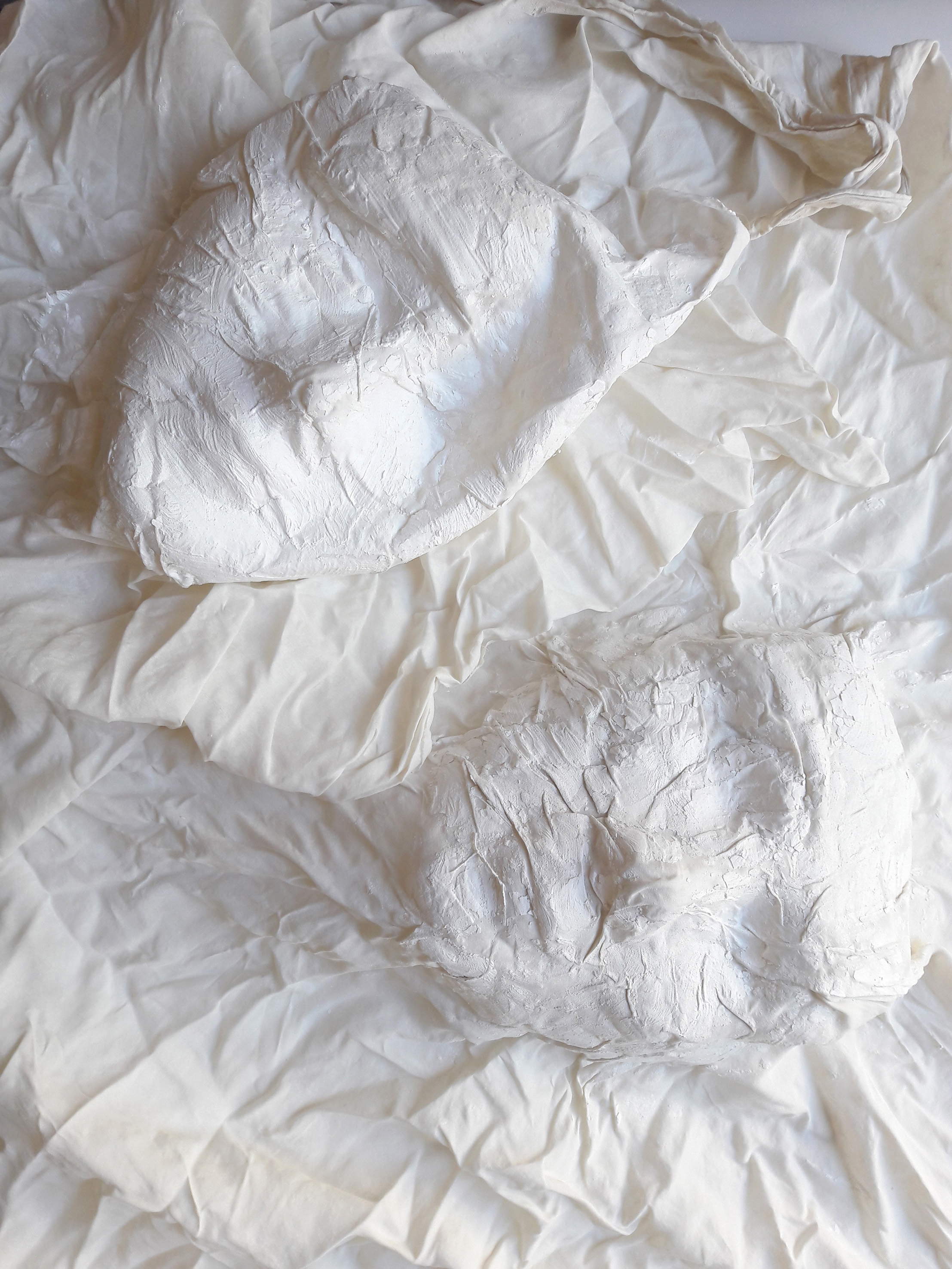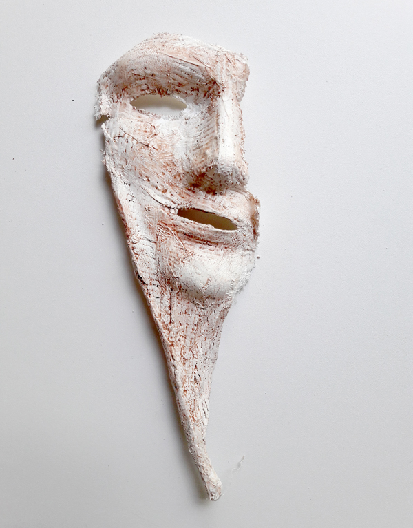from the series installed rituals - masks faces/tales - objects, masks, drafts; silk, plaster